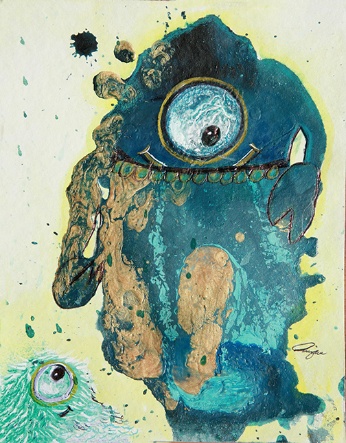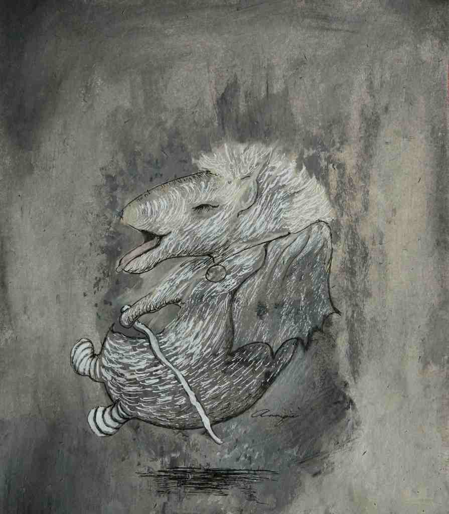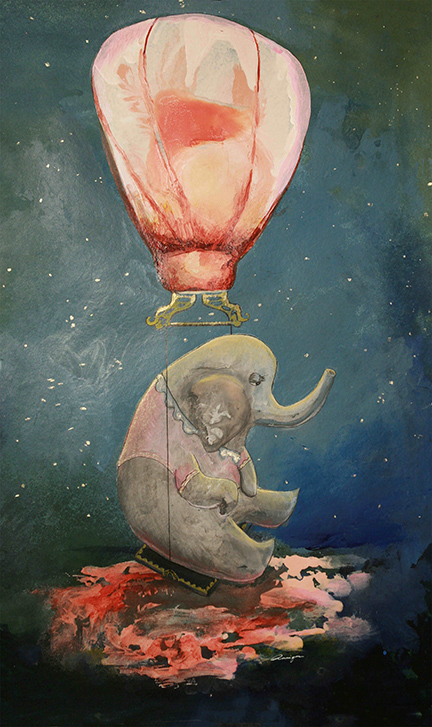Night Time Float (elephant) 21 X 30″, Harry (Green Rabbit) 6 X 12″, Dreamland (mushrooms) 10 X 14″, Una (monster) 7 X 9″, Mushroom Girl 10 X 14″, Bunnykins 9 X 11, Anteater 8.5 X 9″, Spring Float 11 X 13″